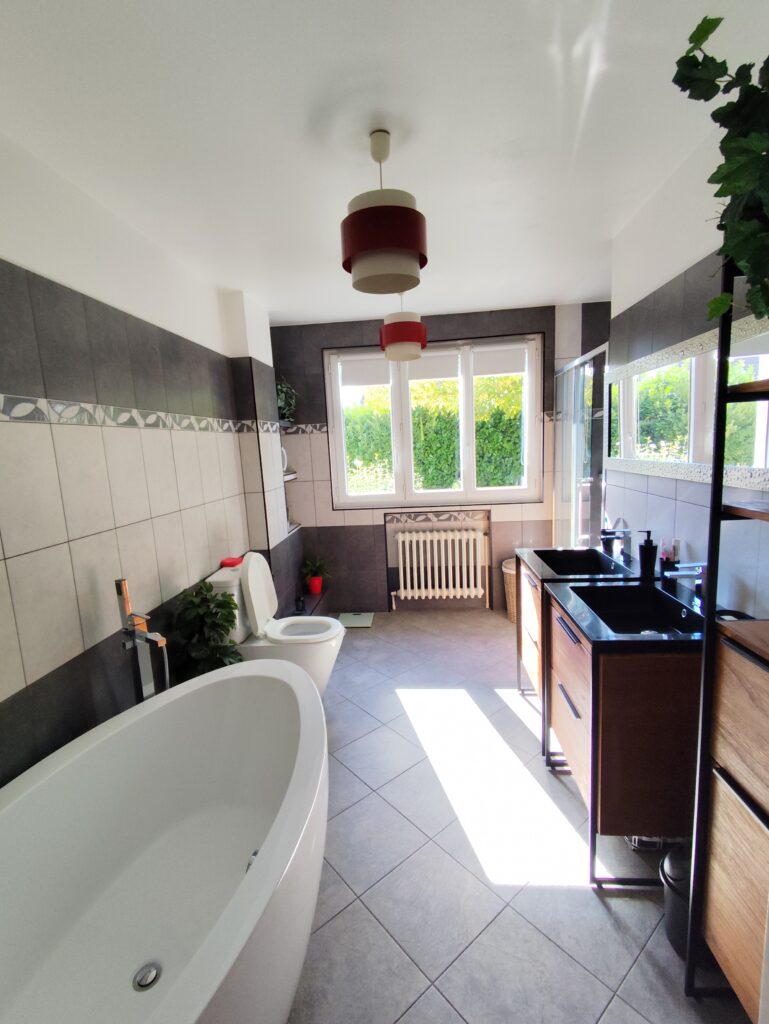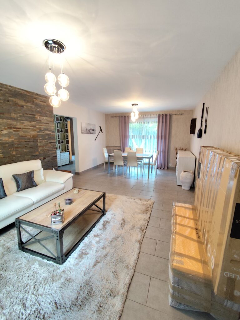 À l’étage, un palier dessert trois grandes chambres dont une avec dressing, ainsi qu’une salle d’eau moderne avec WC. Le sous-sol total comprend un garage, une buanderie, une cave et une grande pièce polyvalente pouvant servir de salle de jeux, de sport ou de home cinéma.