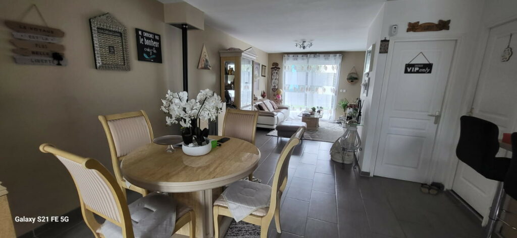 La Clé immobilière vous propose cet belle maison bien entretenue proche de toutes les commodités, écoles, commerces, transports, axes routiers, aéroport, gares et sans aucun travaux à prévoir. Grand séjour/salle à manger avec un poële à granulé et grande baie vitrée avec lumière traversante et donnant sur une terrasse de 30 m². Cuisine équipée et aménagée avec grande baie vitrée ouverte sur la salle à manger. Un cellier et des toilettes avec un lave main. A l’étage on a 3 chambres avec beau parquet au sol et peinture au mur. Une salle d’eau avec douche à l’italienne, double vasque, WC, sol, mur carrelés et parement de pierre. Un accès grenier, isolation extérieur, alarme, double vitrage et volets électriques et bois. Terrain de 409 m² et abri de jardin.